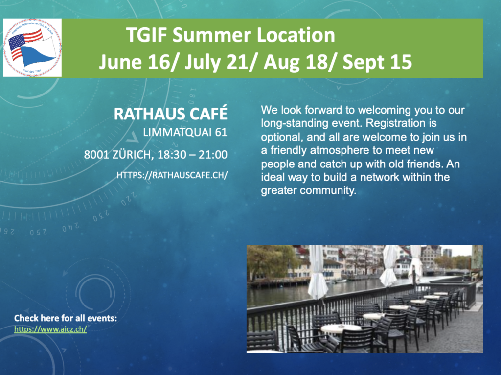 By registering for any AICZ event, you agree to the publication of any photos or videos taken of you or your guests or texts mentioning you or your guests, without compensation and without the Club having to seek further formal authorization from you. You further confirm that you understand English, have read this disclaimer such that you fully understand its implications.