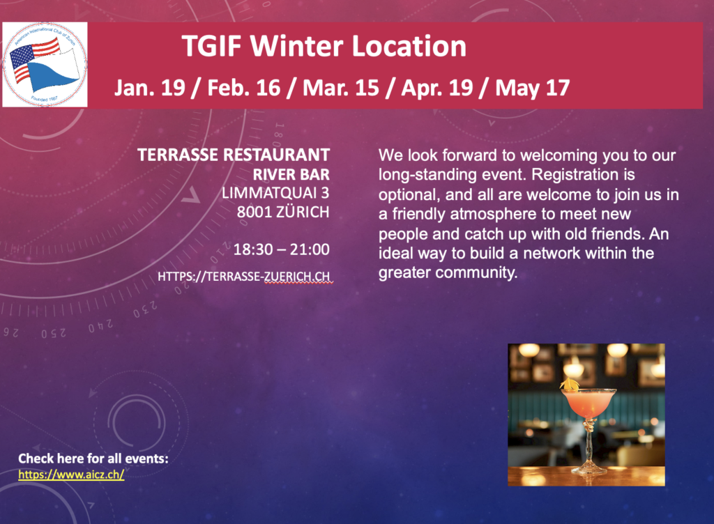 By registering for any AICZ event, you agree to the publication of any photos or videos taken of you or your guests or texts mentioning you or your guests, without compensation and without the Club having to seek further formal authorization from you.  You further confirm that you understand English, have read this disclaimer such that you fully understand its implications.