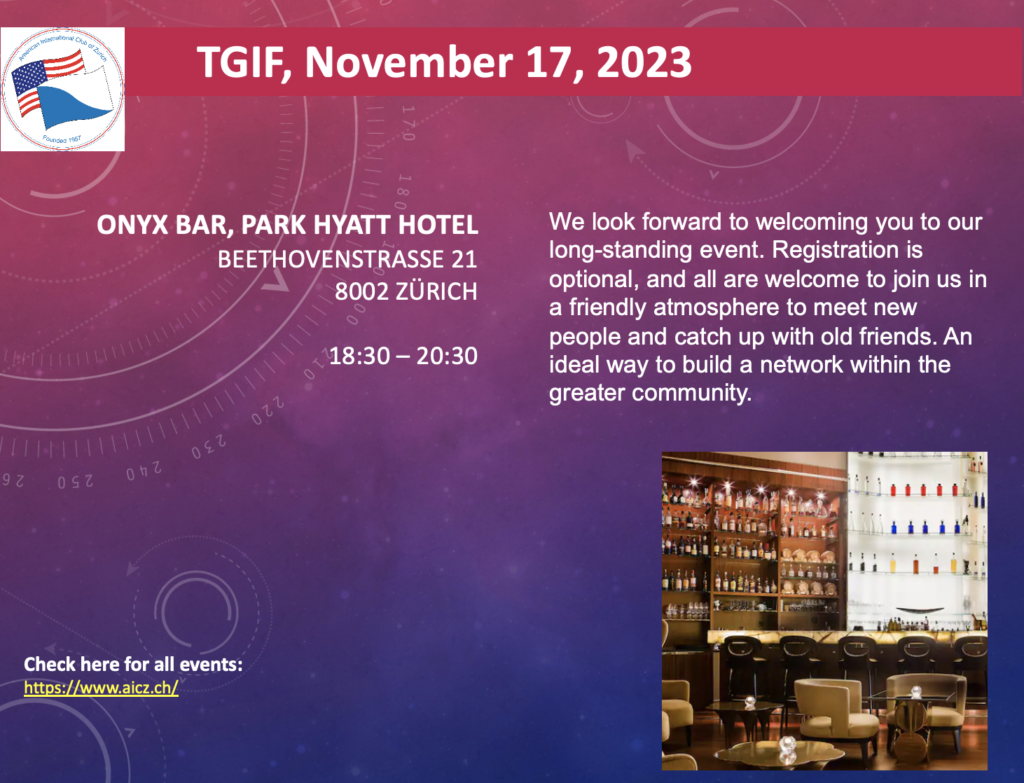 By registering for any AICZ event, you agree to the publication of any photos or videos taken of you or your guests or texts mentioning you or your guests, without compensation and without the Club having to seek further formal authorization from you.  You further confirm that you understand English, have read this disclaimer such that you fully understand its implications.