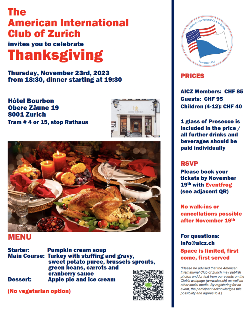 By registering for any AICZ event, you agree to the publication of any photos or videos taken of you or your guests or texts mentioning you or your guests, without compensation and without the Club having to seek further formal authorization from you. You further confirm that you understand English, have read this disclaimer such that you fully understand its implications.